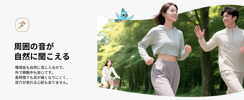 耳が疲れづらい / 周囲の音が聞こえる など利便性の高さが特長な反面、