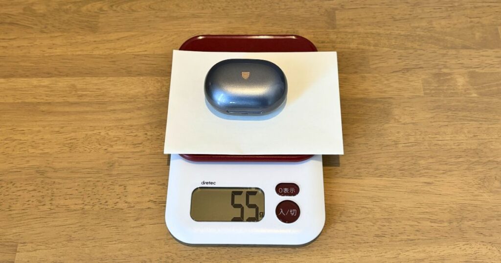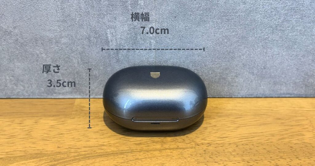 ワイヤレスイヤホンの充電ケースの中では大きめの部類に入ると思います。