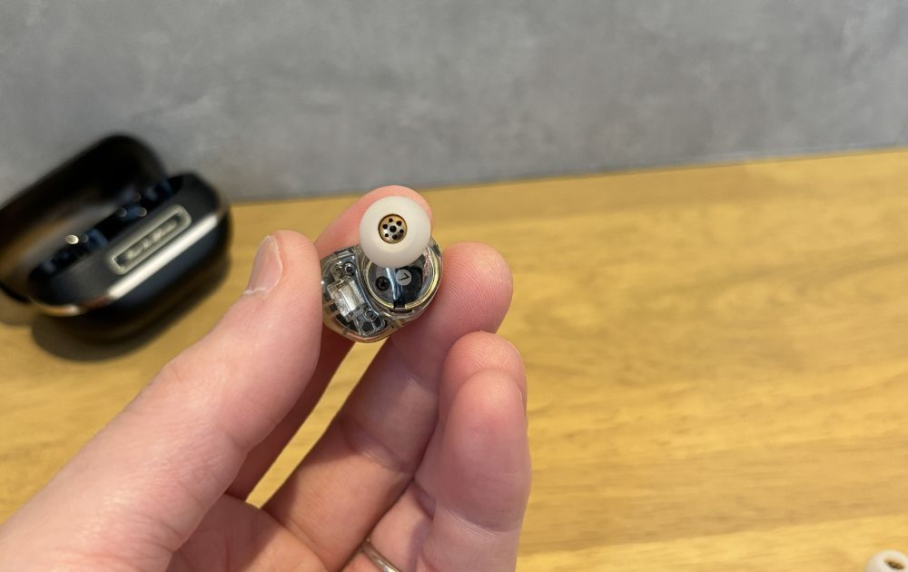 ガジェット感の強いイヤホン本体が透けて見えるデザインや